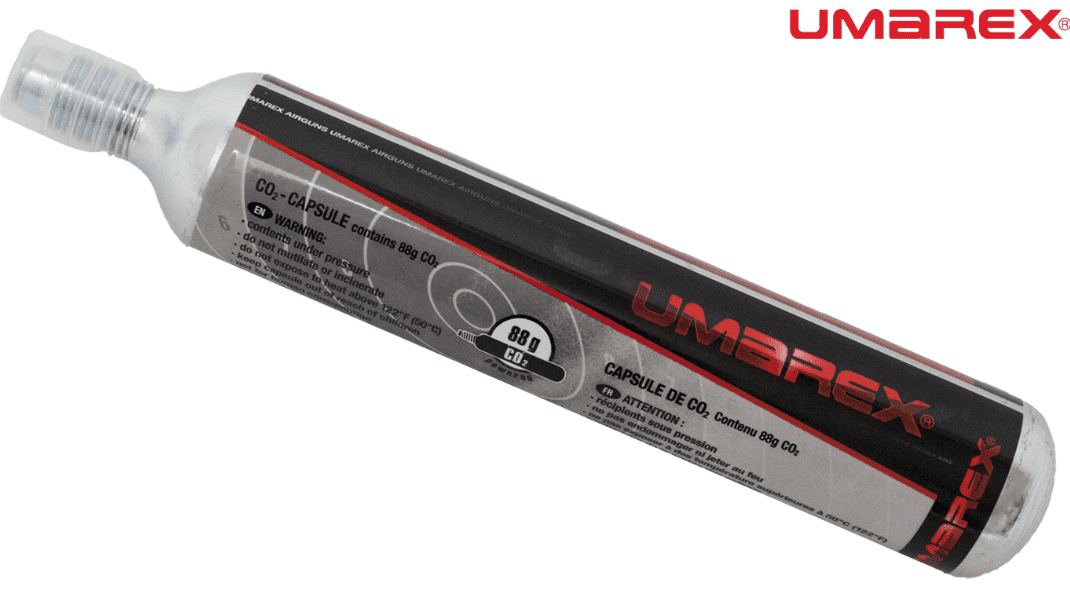 These Umarex-Walther 88 gram CO2 cartridges comes two per pack. Great quality CO2 runs clean in your airguns and fit air rifles such as the Umarex AirJavelin, Umarex Fusion 2, 850 Air Magnum and 850M2. 88-gram CO2 cylinders provide longer shooting sessions. We recommend that you use all the CO2 and that you not leave pressure on the seals of your airgun for more than a day or two. It's a good idea to put a drop of silicone oil, like RWS Chamber Lube, on the tip of the capsule before inserting it to keep the seals lubricated and the internals of your pellet rifle in good working condition.