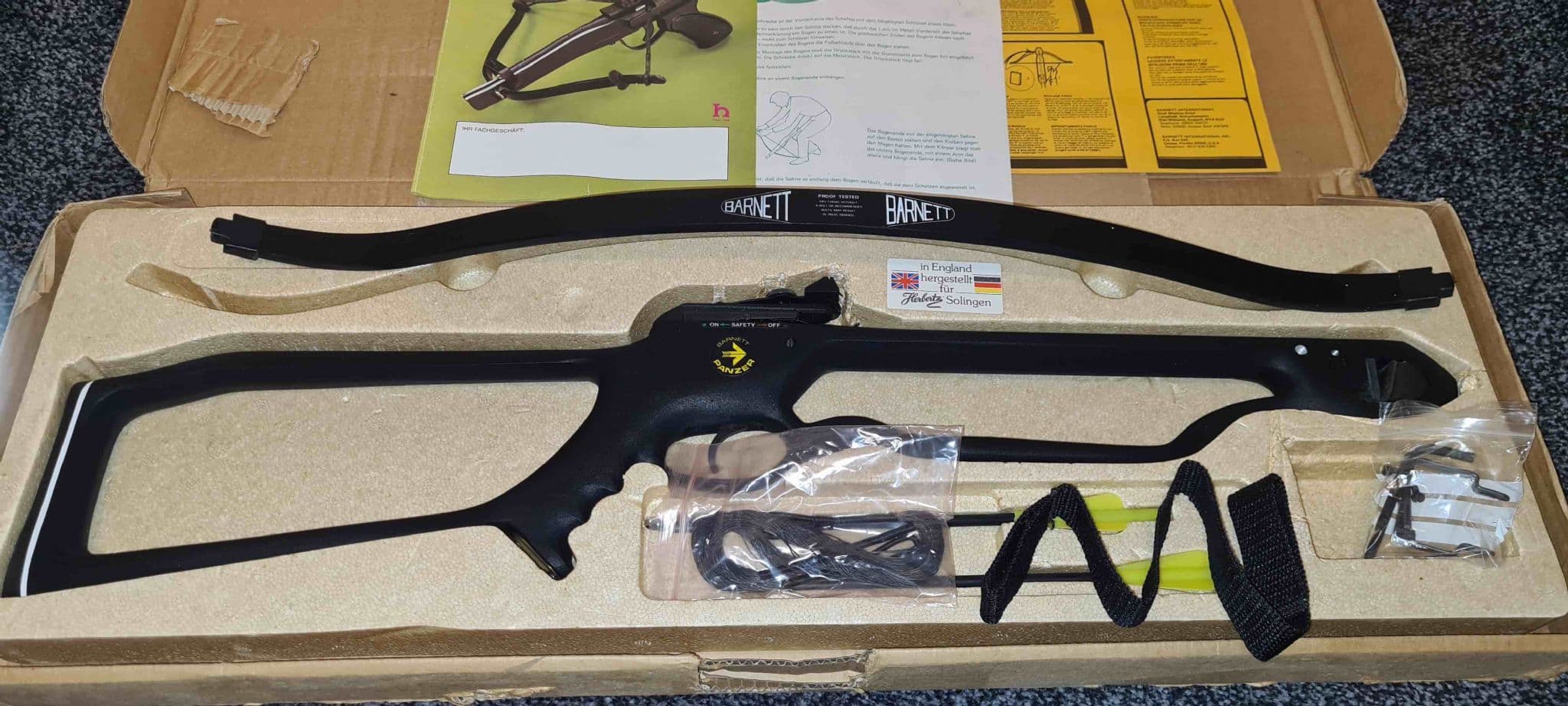 Description: Mk1 Barnett panzer, never used, ever! Still in box with prod, string, front and rear sights, 2 bolts, material stirrup, instructions.This is probably the only unused mk1 panzer in the world! Same tubular design as the mk1 commando.